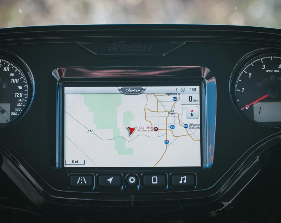 Ride Command® 7-Zoll-Display mit vorinstallierter GPS-Navigation, Apple CarPlay®, Bluetooth®-Konnektivität, konfigurierbaren Anzeigen, Fahrstatistiken und weiteren Funktionen.